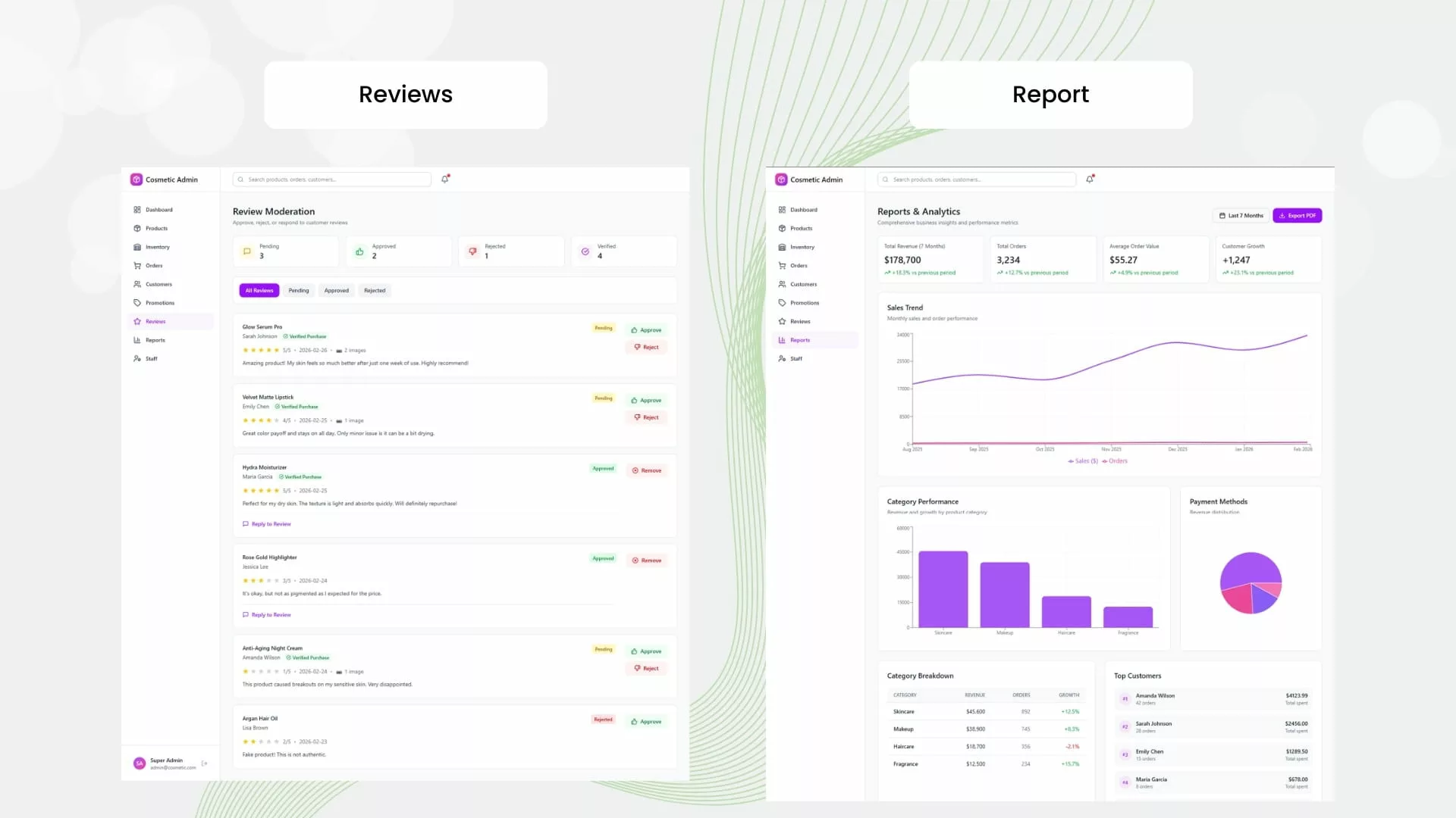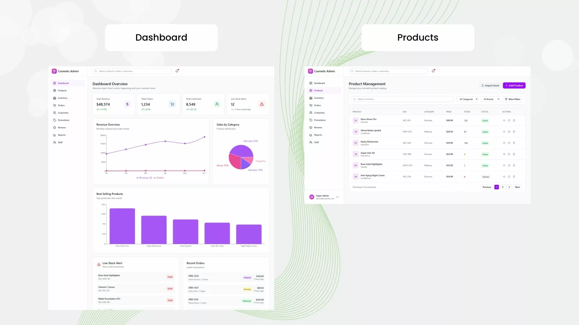 For You: Manage and display your cosmetic products with high-quality images, descriptions, and pricing, all through an easy-to-use admin panel.