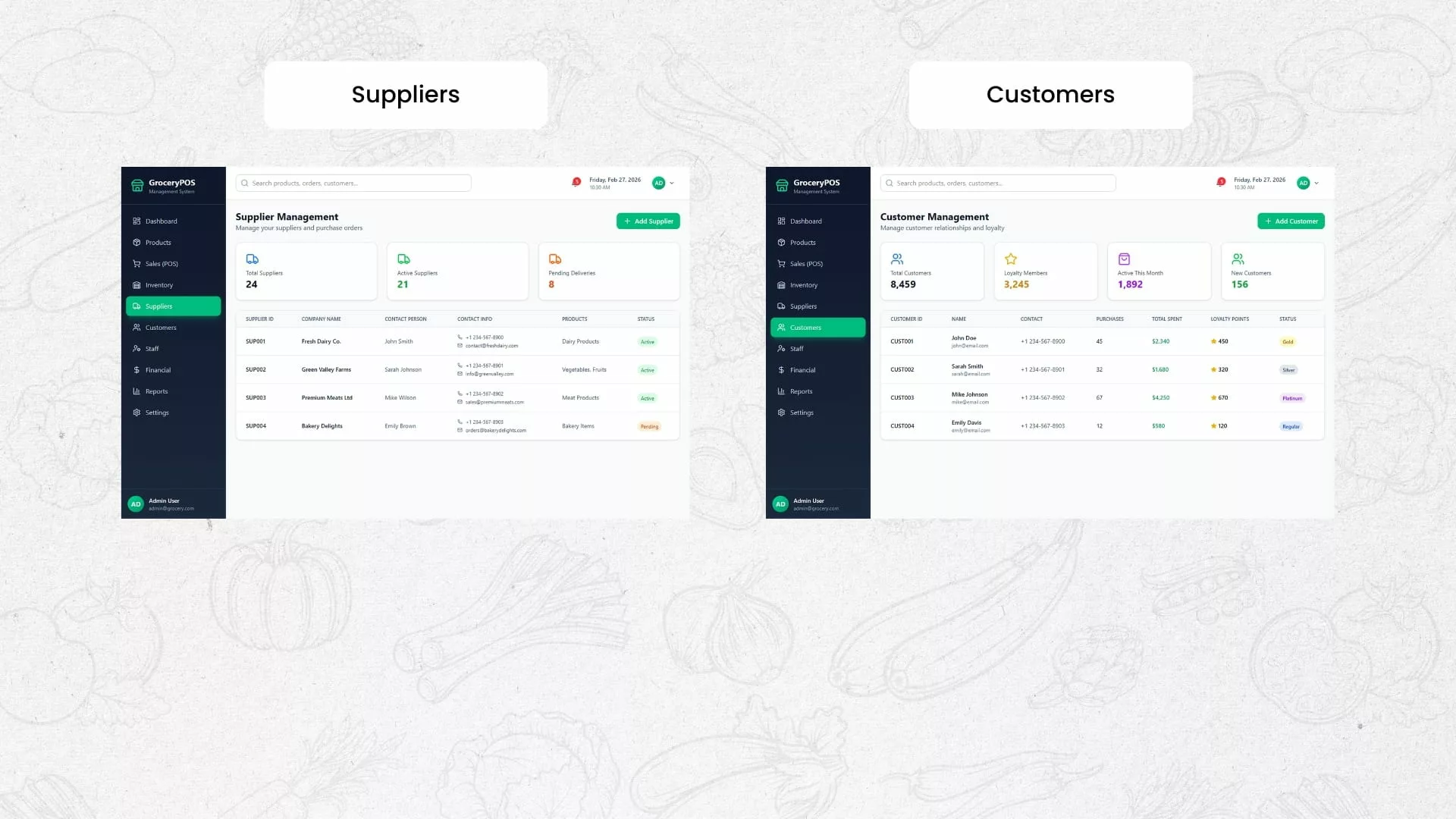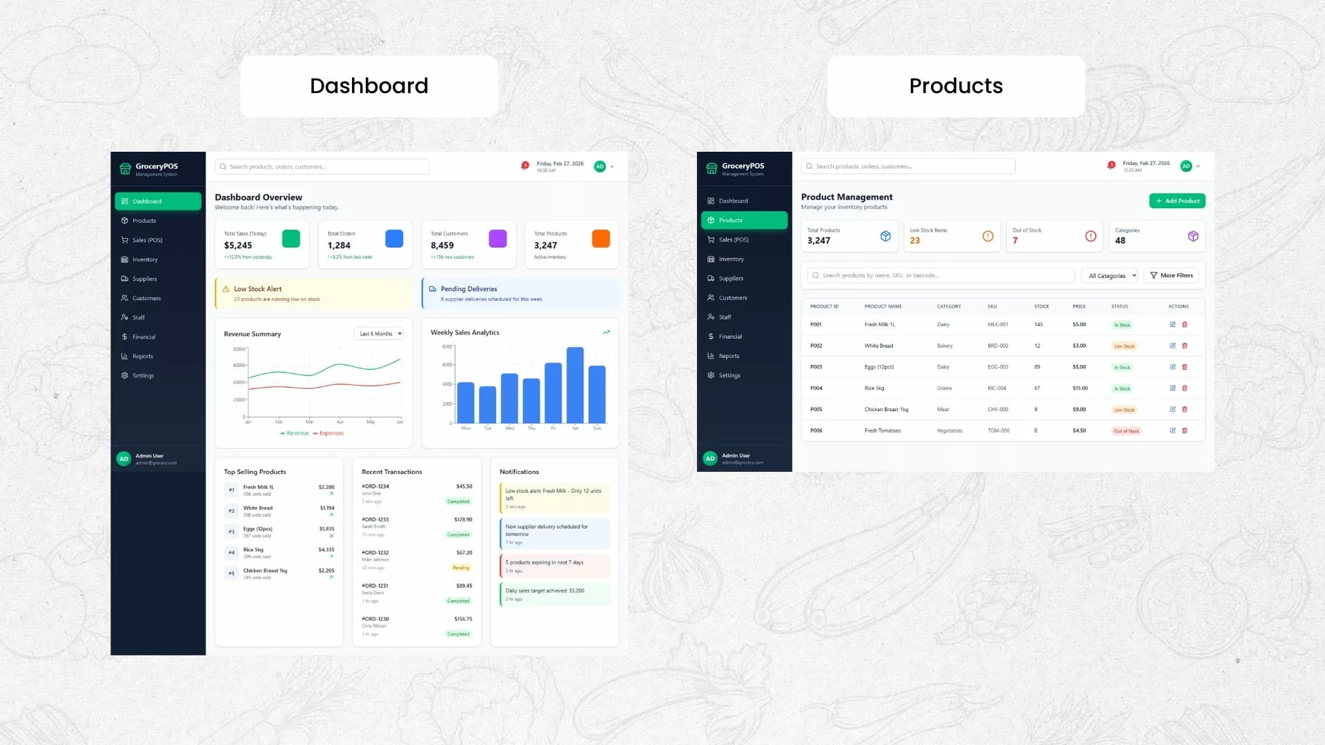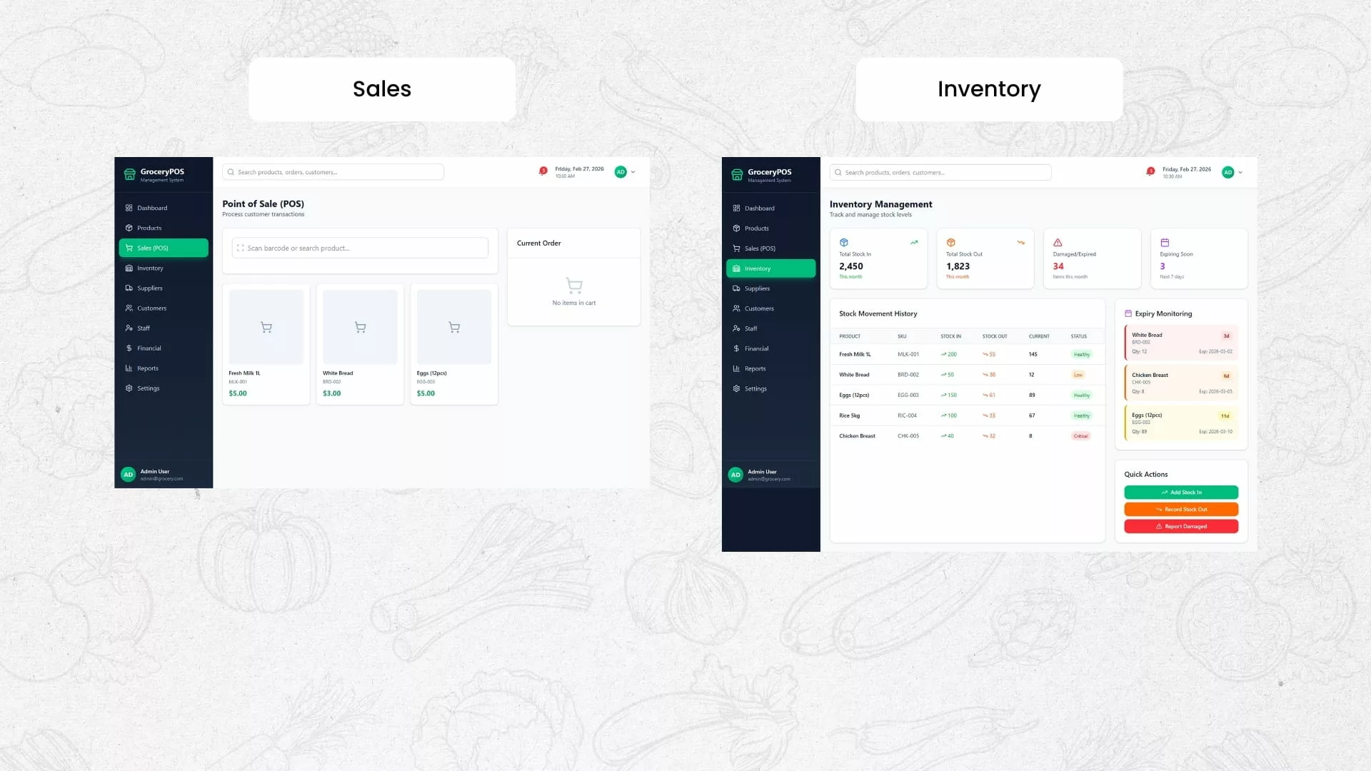 For Customers: Track orders in real time and receive notifications on delivery status, making grocery shopping more convenient and reliable.